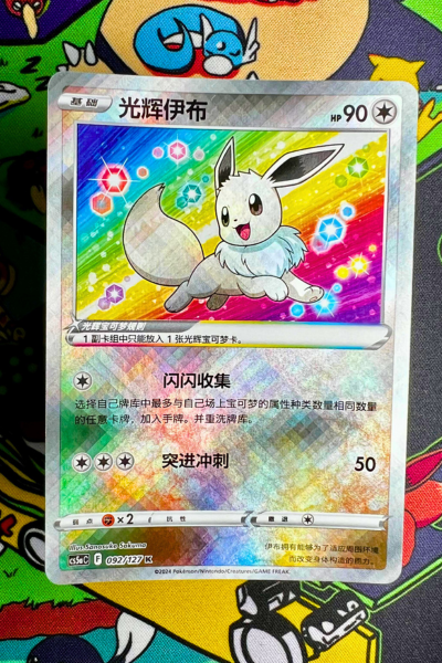 • Silver Borders & International Back: All Simplified Chinese Pokémon cards, including the Radiant Eevee, have silver borders and the International Pokémon back, distinguishing them from other editions.